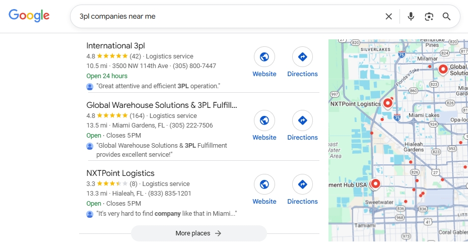 Dominate local map results when companies search for warehousing, distribution, or fulfillment partners.