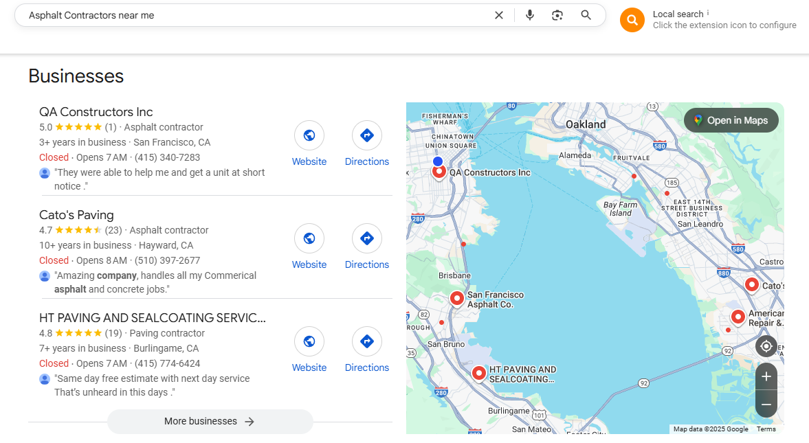 Show up in local map packs for searches like “asphalt contractors [city].”