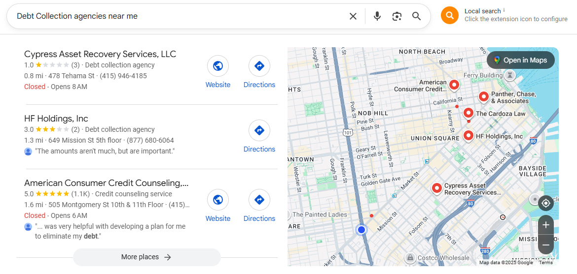 Show up in Google’s map pack for high-intent searches like “collection agency [city]” and “debt recovery services near me.”