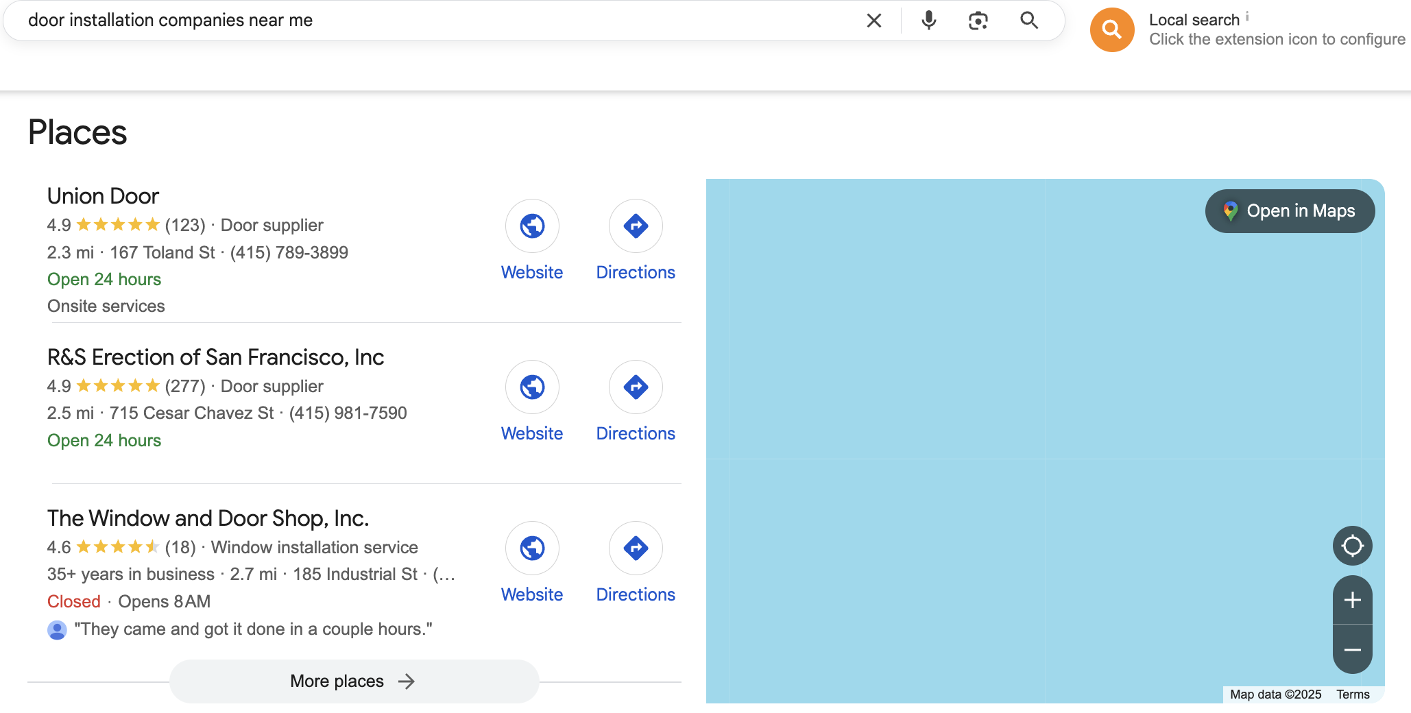 Show up in Google’s local map pack for searches like “door contractor [city]” and “door replacement near me.”