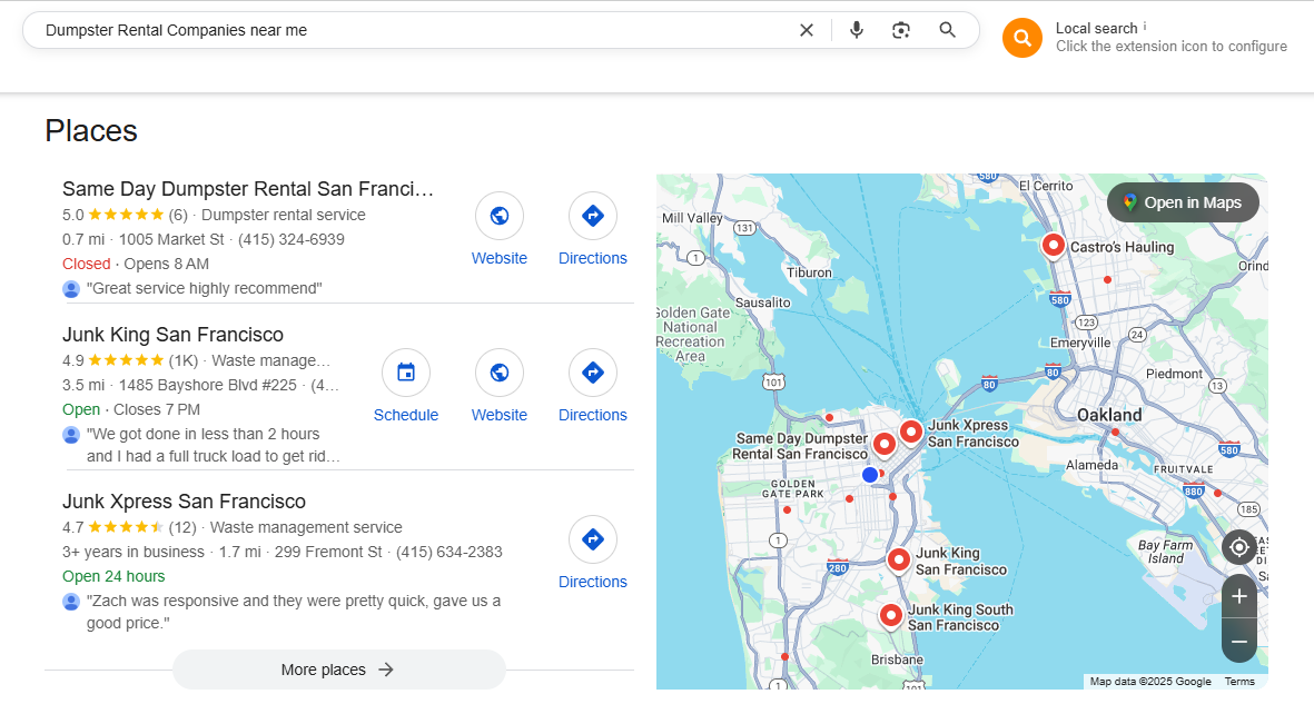 Dumpster rentals are urgent, local, and competitive. Customers usually search when they’re in the middle of a project and need a fast solution.