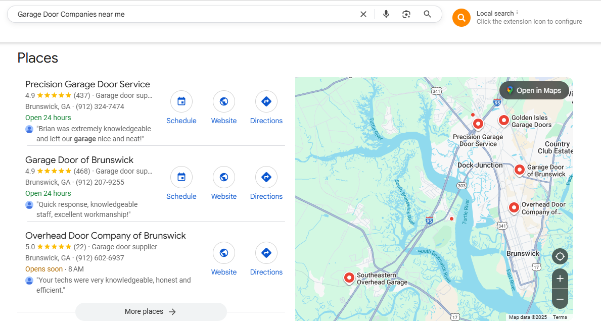 We analyze your services, competition, and keywords like “garage door repair near me,” “garage door replacement [city],” and “emergency garage door service.”