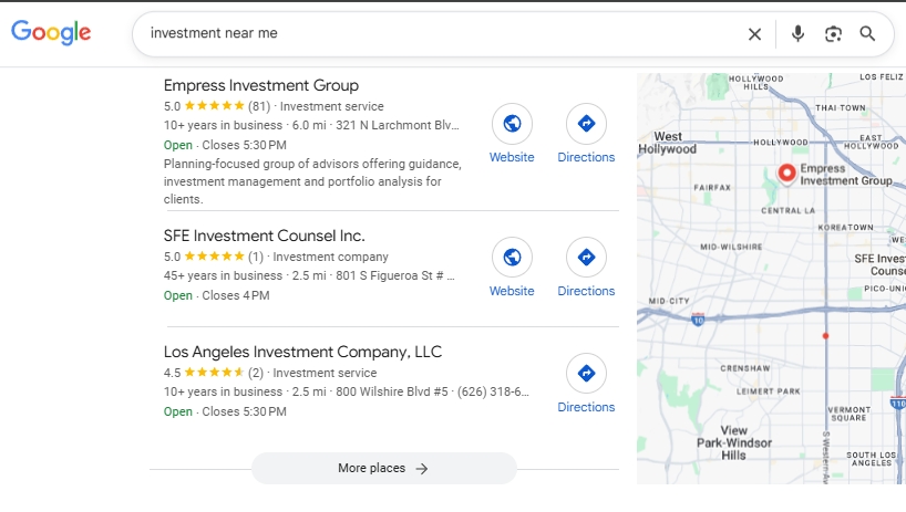 Appear in Google’s map results and local searches for terms like “wealth management advisor [city]” or “private investor opportunities.”