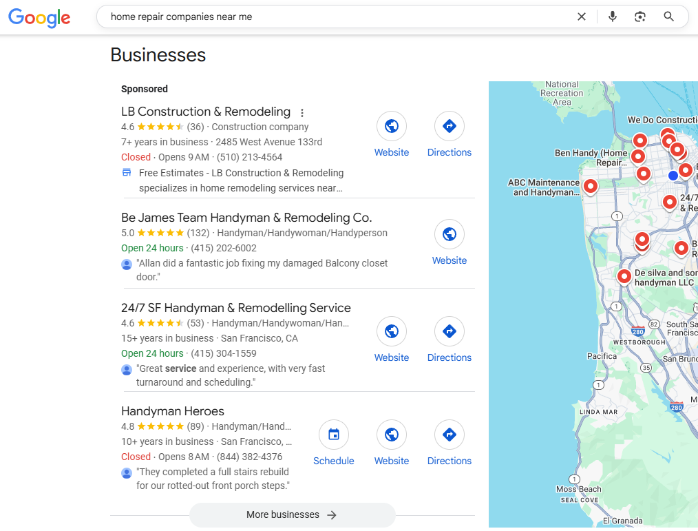 Rank for local, high-intent searches like “home repair near me,” “roof repair [city],” or “plumbing services [city].”