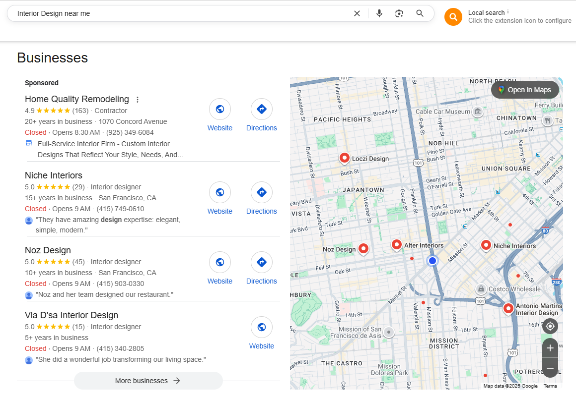 We analyze your services, target clientele, and keywords like “interior designers near me,” “home renovation design,” or “office interior design [city].”