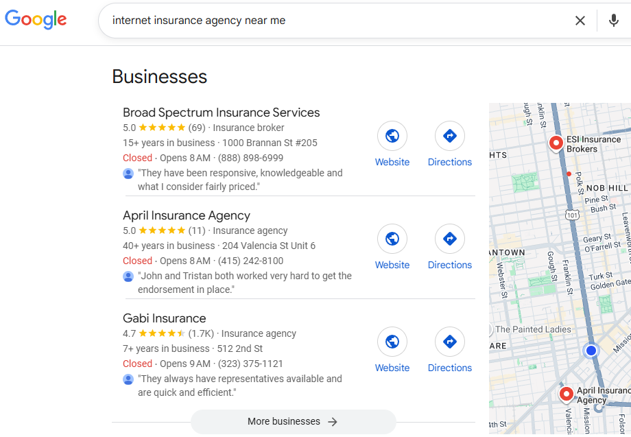 Appear in Google’s top results and map listings for high-intent searches like “insurance agent [city]” or “get insurance quote online.”