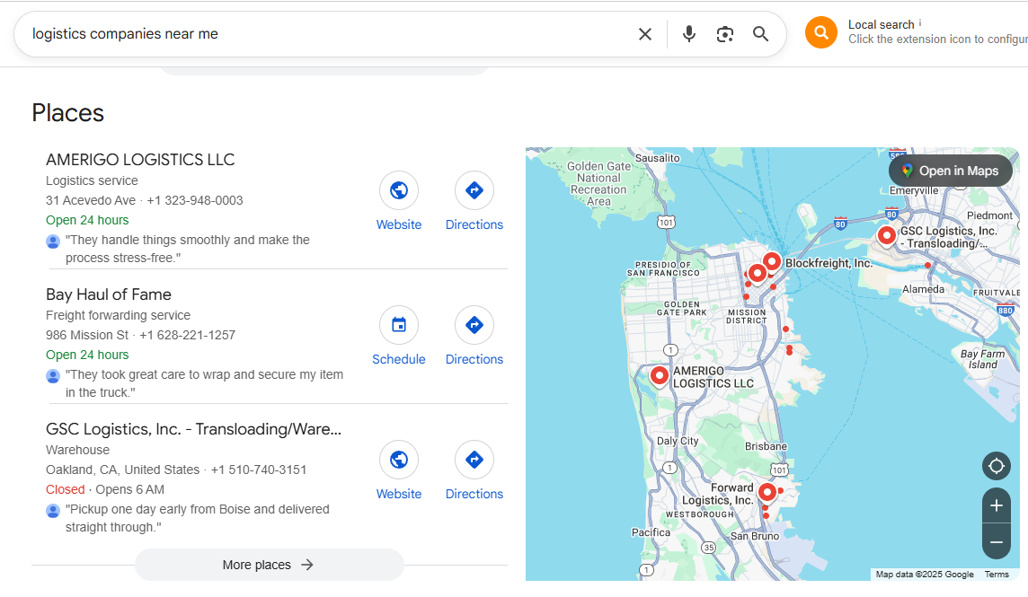 Show up in Google’s local map results and industry-specific searches for logistics and freight management services.