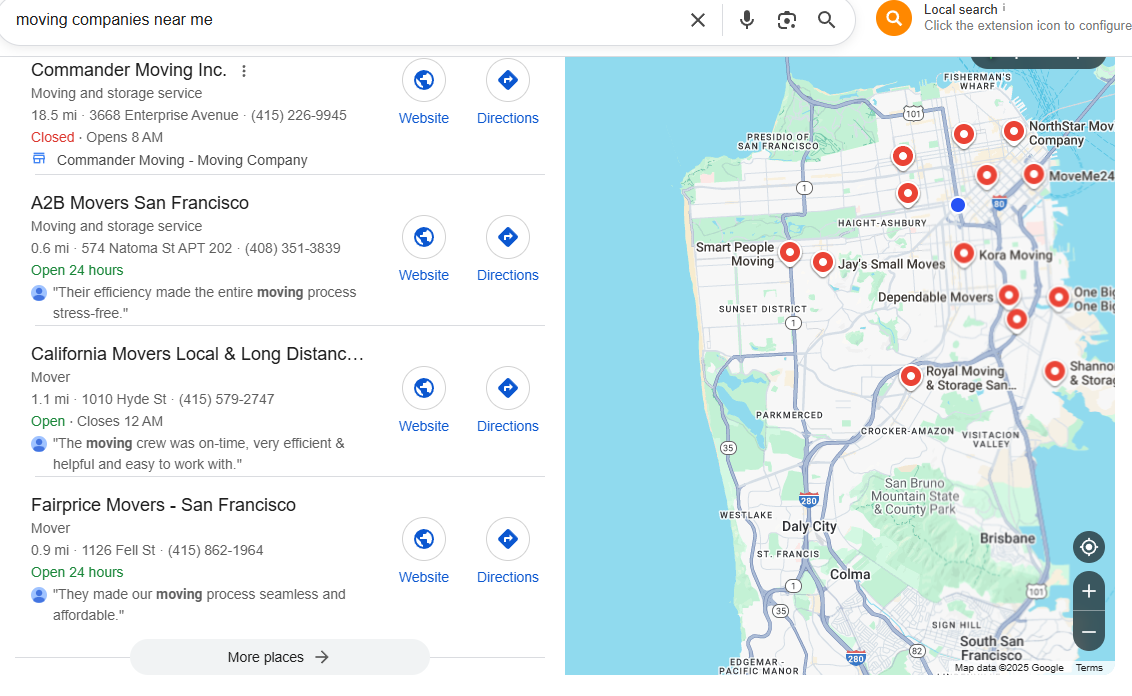 Show up in Google’s map pack for searches like “licensed movers [city]” and “moving help near me.”