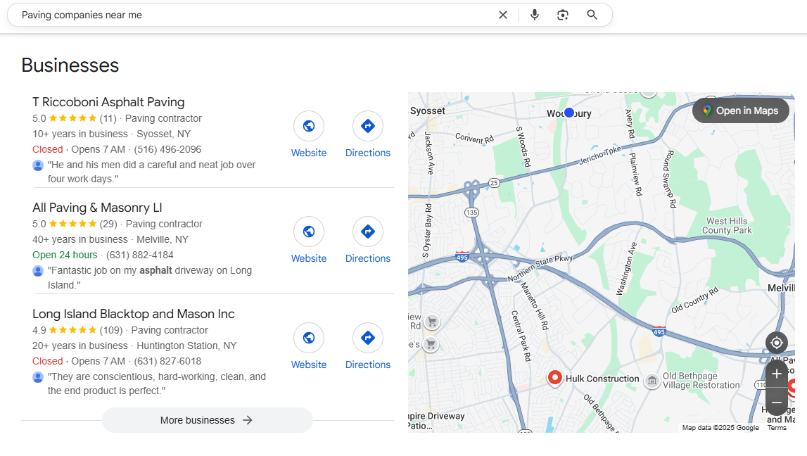 Show up in local map packs for top searches like “asphalt paving [city]” and “concrete paving contractors near me.”