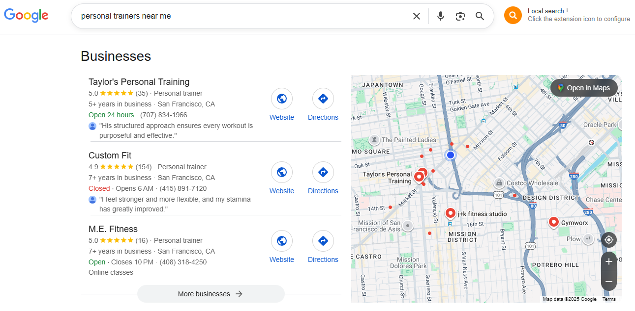 Show up in Google’s local map results when clients search for “personal training” or “fitness coaching” in your area.
