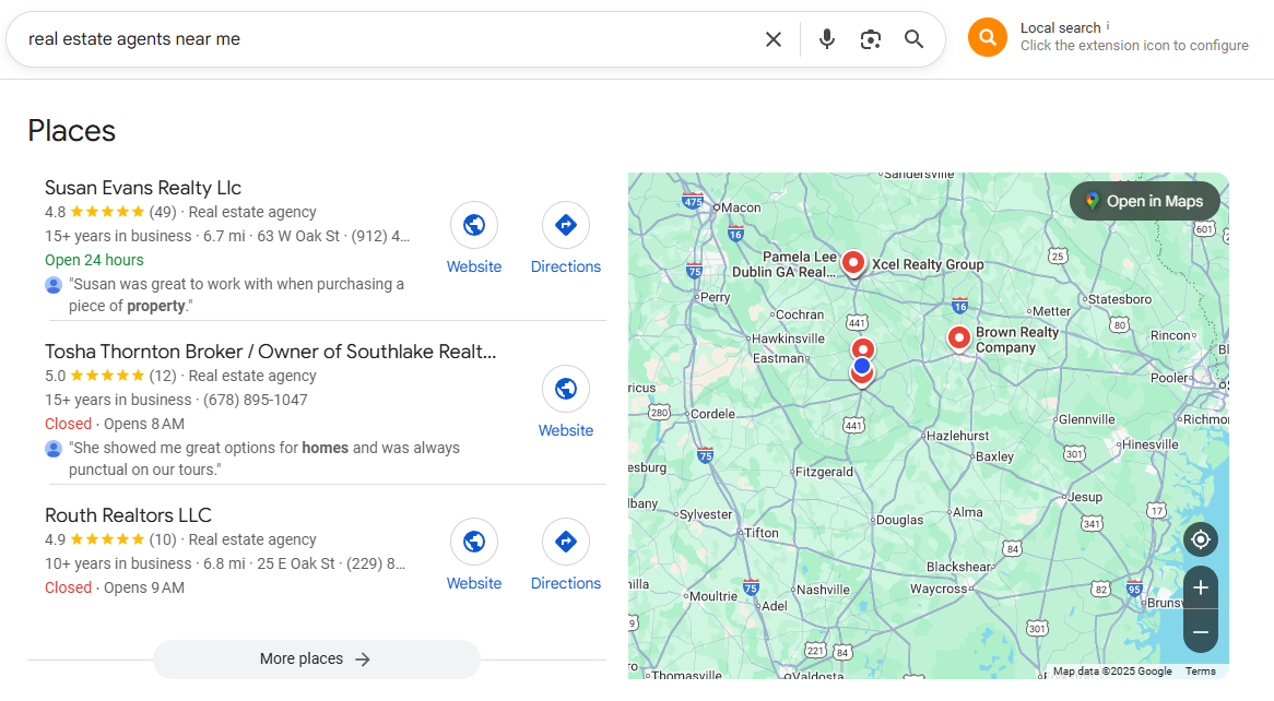Show up in Google’s local map pack for high-intent searches like “real estate agent Atlanta” or “homes for sale Savannah GA.”