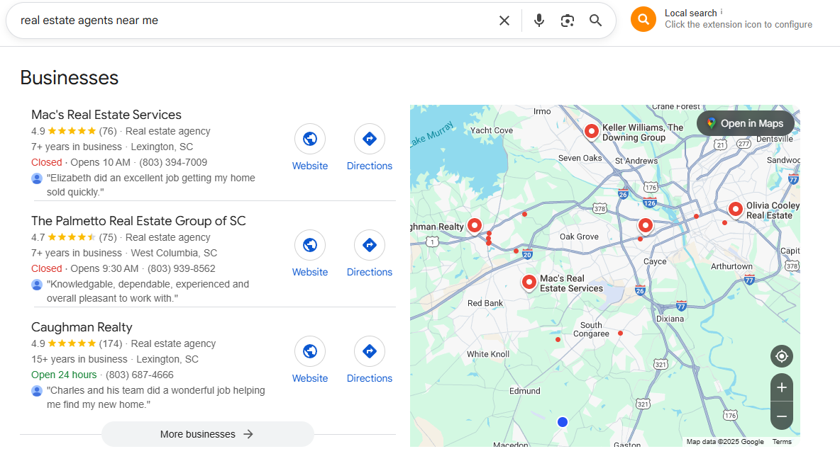 Show up in local map packs for high-intent searches like “real estate agency Charleston” or “realtor near Columbia SC.”