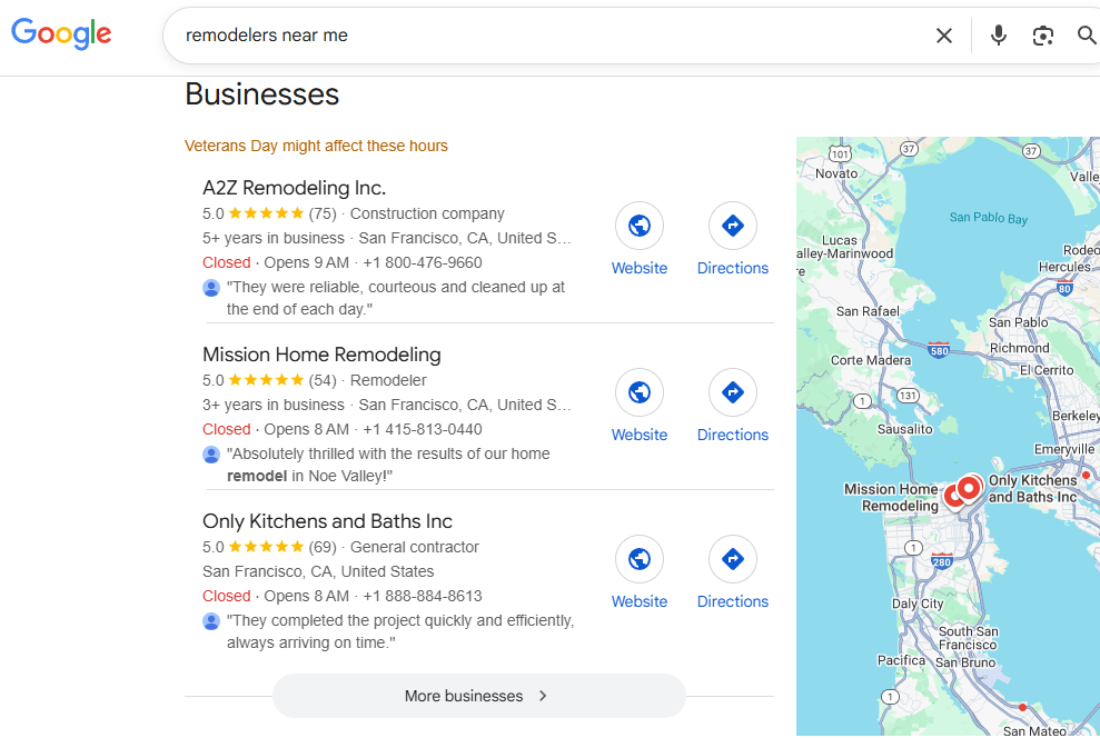 Show up in Google’s local map pack for high-converting searches like “remodeling contractors [city]” and “home renovation near me.”