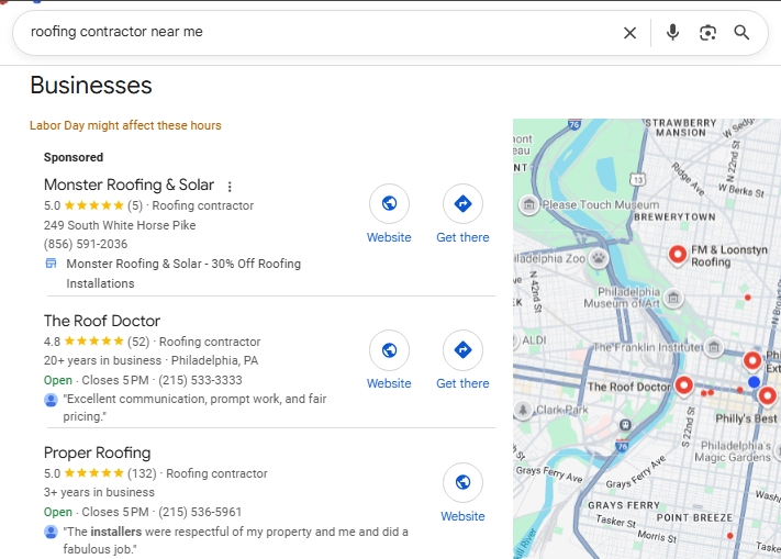 Show up in Google’s map pack for high-intent local searches like “roof repair near me” or “roof inspection Philadelphia.”